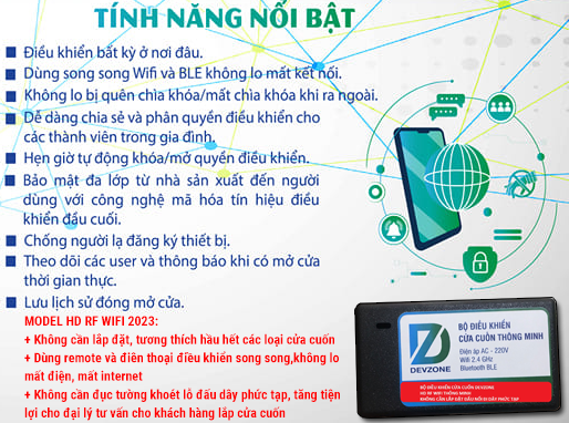 Ưu điểm của model DEVZONE HD RF WIFI so với các sản phẩm điều khiển cửa cuốn khác trên thị trường: