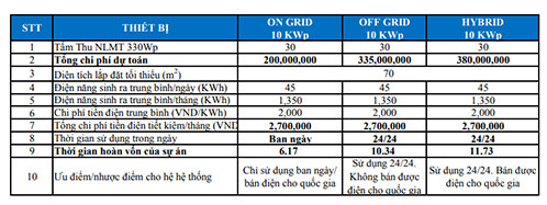Theo tìm hiểu, hện có 3 giải pháp để ứng dụng điện năng lượng mặt trời. Thứ nhất là điện năng lượng mặt trời hòa lưới (điện mặt trời dư ra có thể bán lại cho công ty điện). Thứ hai là điện mặt trời độc lập (có bộ lưu trữ để sử dụng khi trời tối, mưa bão, không có bức xạ mặt trời...). Thứ ba là kết hợp cả hòa lưới và độc lập.