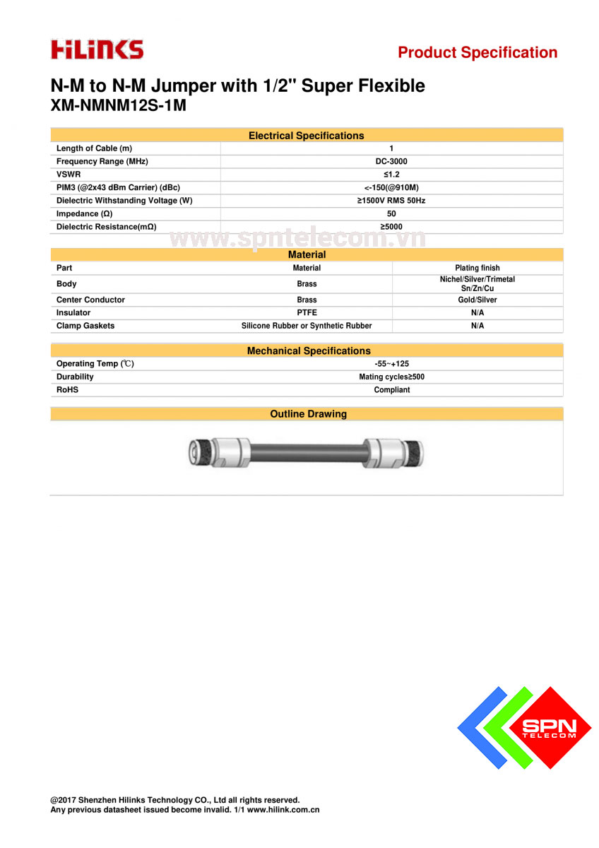 Công ty SPN Telecom chuyên phân phối sản phẩm Jumper RF 1/2 Cáp nhảy siêu linh hoạt N-Male đến N-Male chính hãng HILINKS với số lượng lớn. Đặt hàng nhanh trong ngày, giá cả tốt nhất thị trường.
