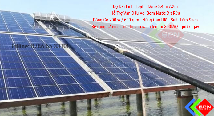 Giải pháp rửa pin mặt trời toàn diện của SPN TELECOM đã cung cấp cho rất nhiều các khách hàng lớn hệ công trình, hệ áp mái đó là các loại Chổi rửa pin mặt trời dạng XOAY có tích hợp đường dẫn nước
