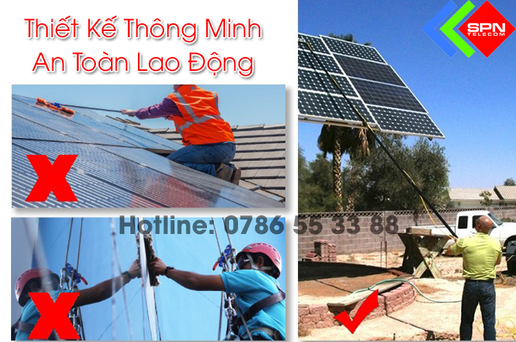+ Việc di chuyển trên tấm pin, trên mái, công trình và lấy nguồn nước nguồn điện rất bất tiện