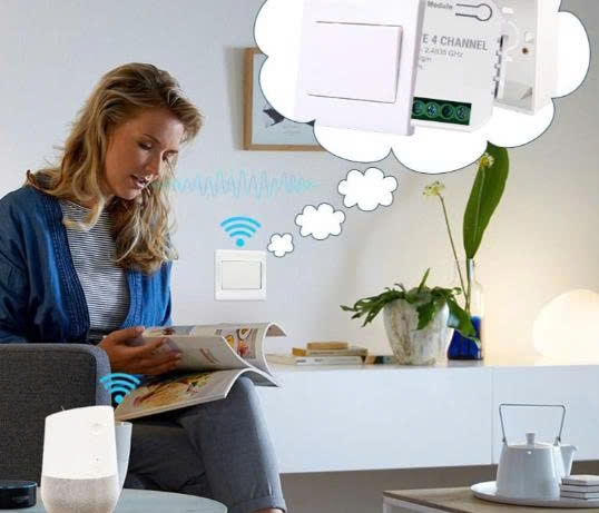 Cấp nguồn điện cho công tắc và kết nối thiết bị với mạng wifi nội bộ 2.4GHz.
