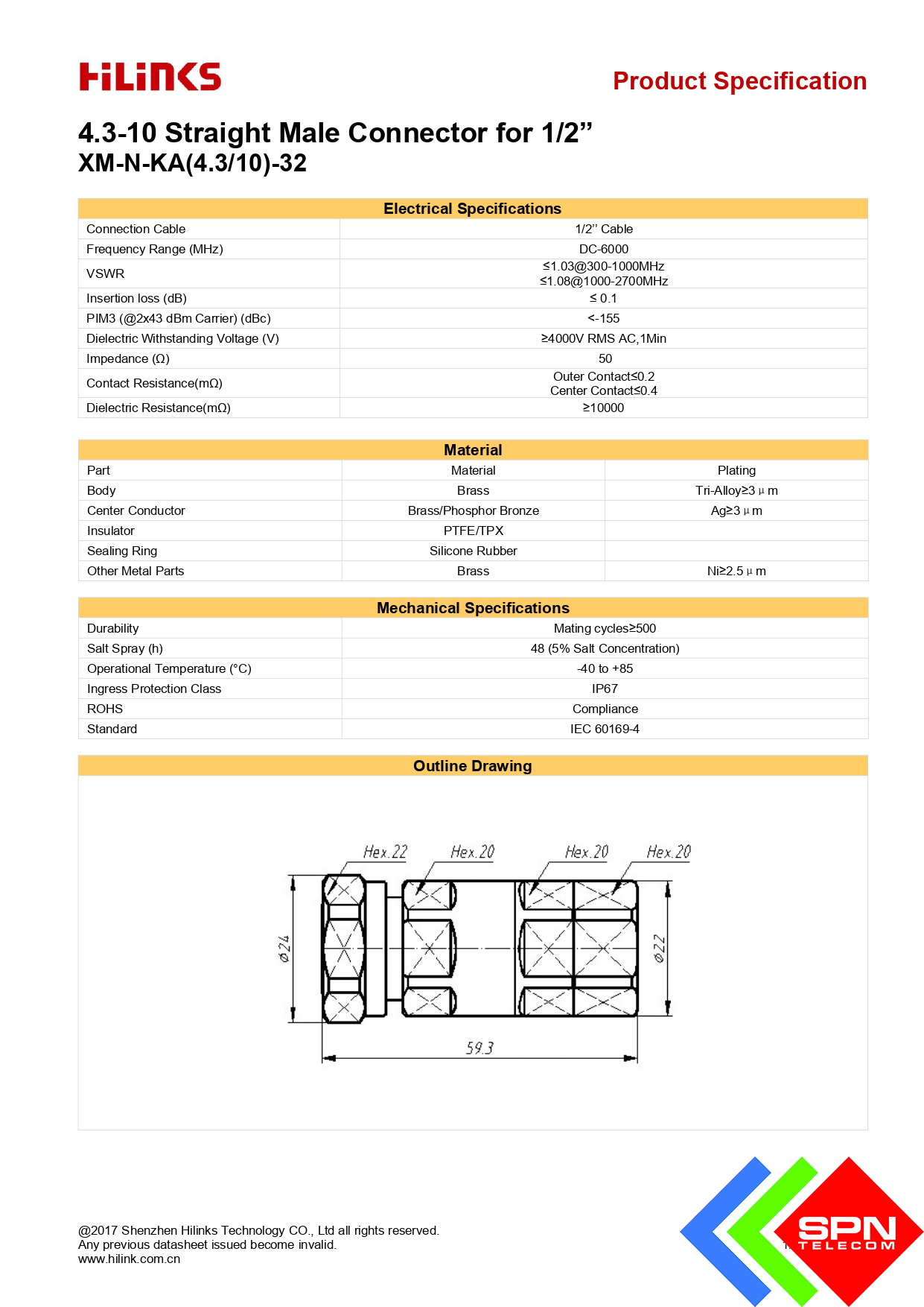 Công ty SPN Telecom chuyên phân phối các sản phẩm đầu nối connector 4.3/10 loại thẳng, N-Male dùng cho cáp Feeder 1/2 chính hãng với số lượng lớn. Đặt hàng nhanh trong ngày, giá cả tốt nhất thị trường.