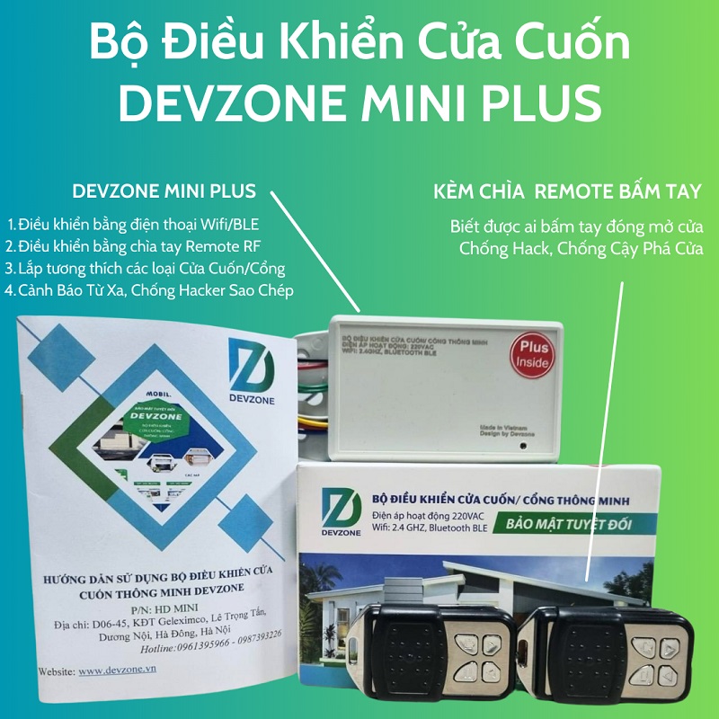 Quý khách có thể tham khảo chi tiết Bộ Điều Khiển Cửa Cuốn DEVZONE chất lượng cao cấp tại đây: Điều Khiển Cửa Cuốn Bằng Điện Thoại DEVZONE MINI PLUS