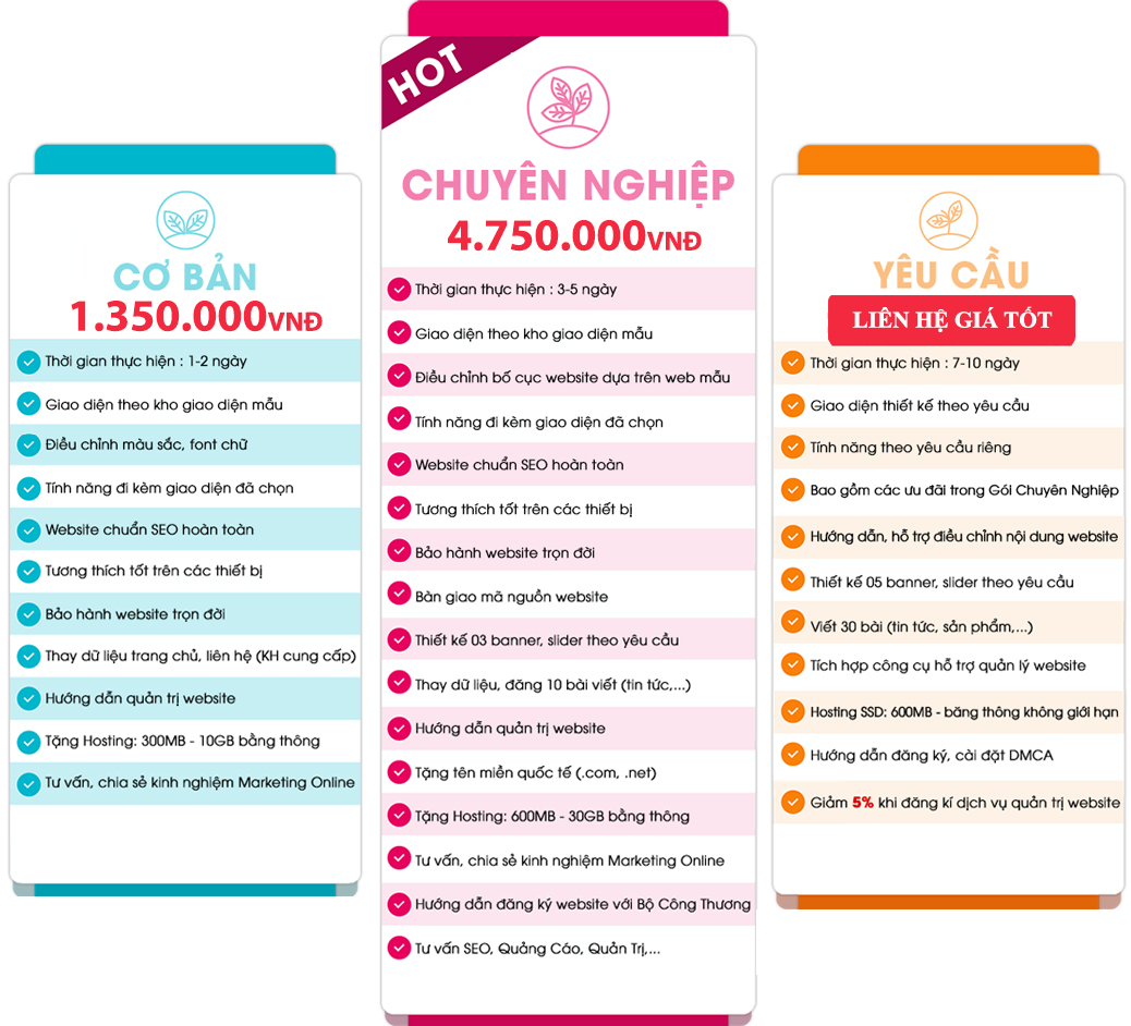 3.2. Bảng giá tư vấn, thiết kế website