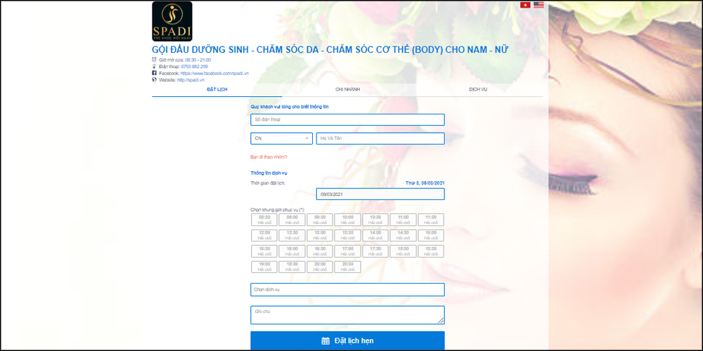 Đặt lịch trên website/ App Mobile.