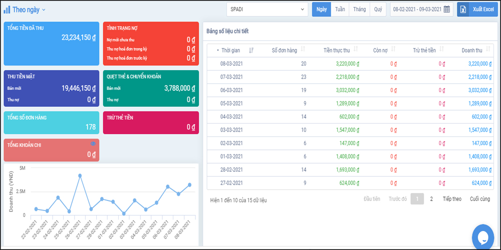 1.2 QUẢN LÝ TÀI CHÍNH: Kiểm soát mọi doanh thu theo ngày/tuần/tháng, theo nhân viên một cách dễ dàng, chuyên nghiệp, loại bỏ những phương thức quản lý thủ công.