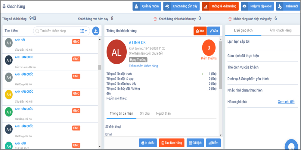 Dễ dàng tra cứu, phân nhóm khách hàng để chăm sóc phù hợp.