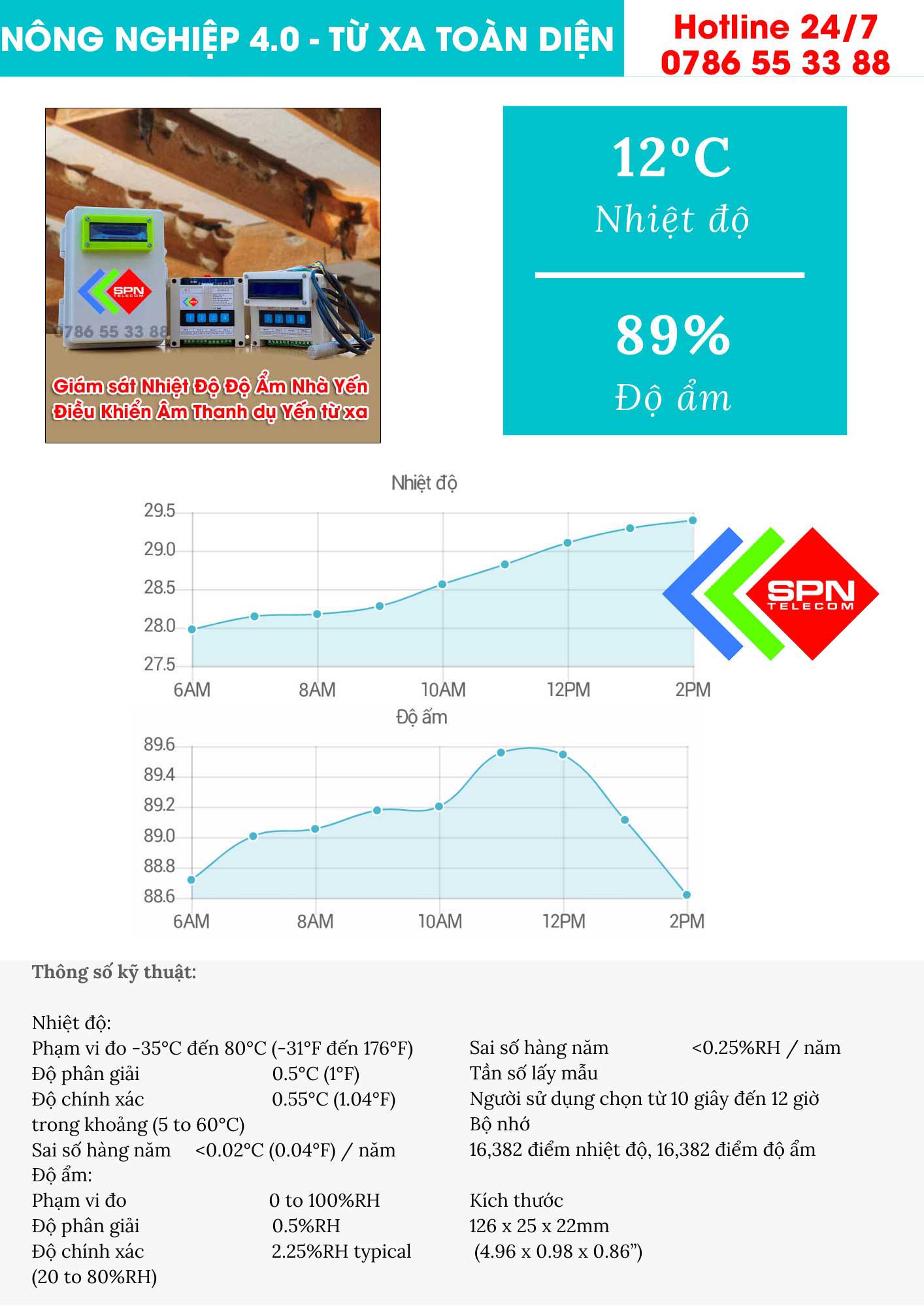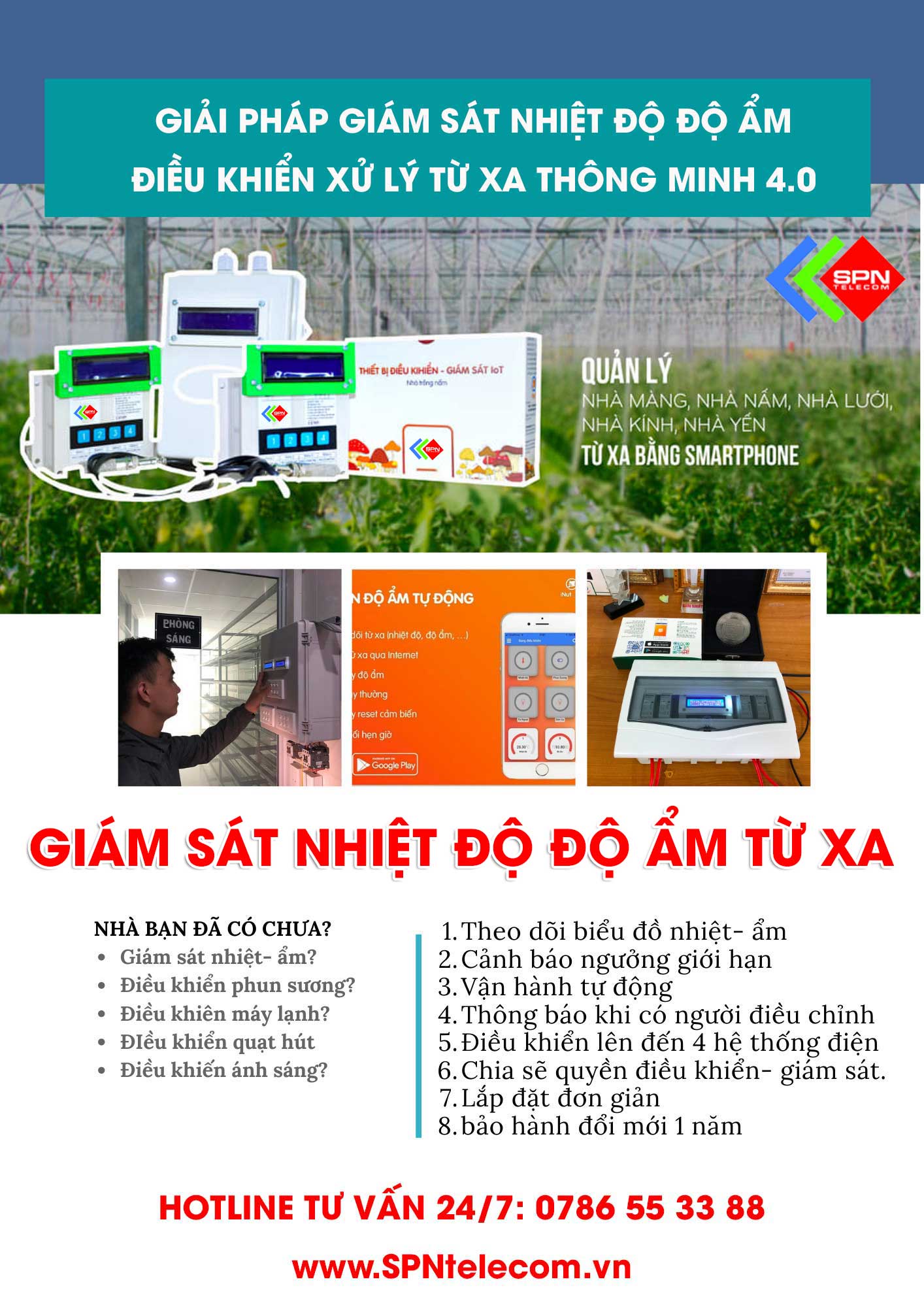 Để duy trì độ ẩm trong nhà yến ổn định, khách hàng của SPN sẽ sử dụng bộ giám sát nhiệt độ độ ẩm và điều khiển các thiết bị điện từ xa qua Internet.