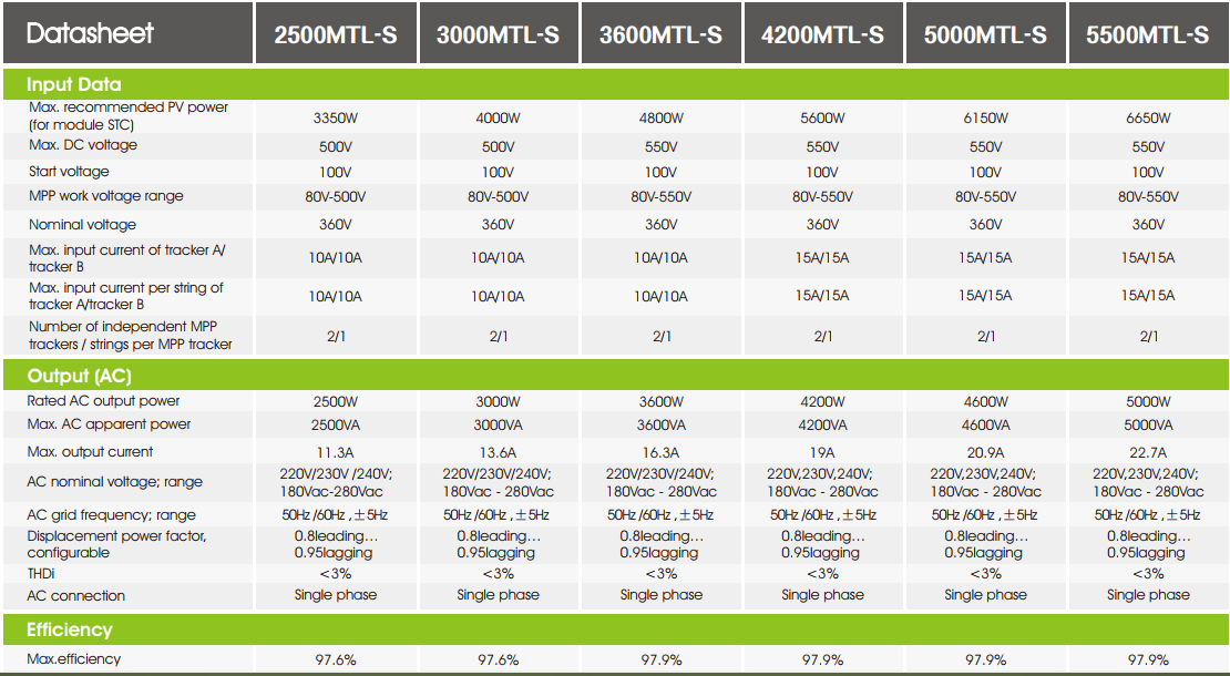 - Công suất đầu vào cực đại từ pin mặt trời: 5750Wp