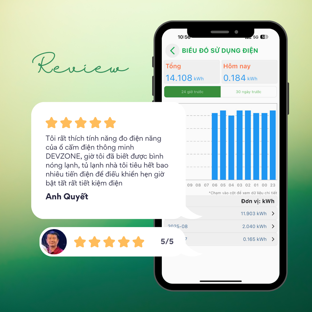 + Giám sát theo dõi điện năng thời gian thực (realtime), devzone trang bị bộ vi xử lý theo dõi điện năng cao cấp có tính chuẩn xác cao mà rất ít thiết bị trên thị trường có: Hẹn giờ và quản lý tiêu thụ điện hiệu quả, giảm thiểu chi phí điện năng không cần thiết, hạn chế lãng phí điện năng