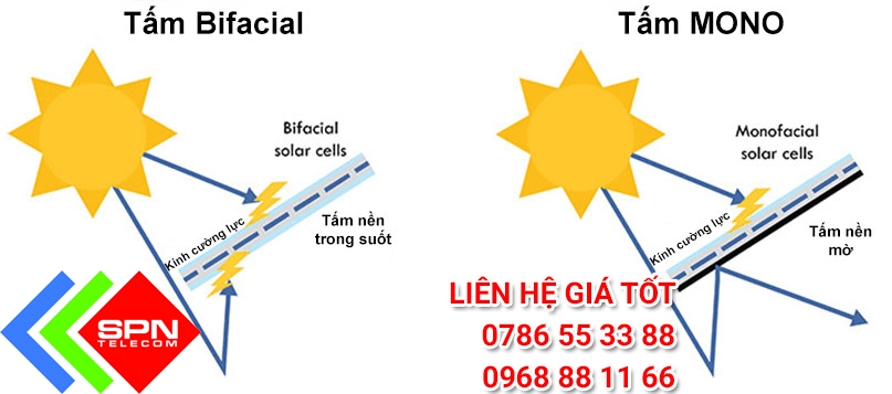 – Công nghệ Bifacial (hai mặt) hay cell pin năng lượng mặt trời hai mặt. Các Bifacial cells hấp thụ ánh sáng từ cả hai phía của tấm pin với cùng vị trí và điều kiện có thể tạo ra năng lượng nhiều hơn tới 30% so với các tấm pin đơn tinh thể MONO truyền thống.