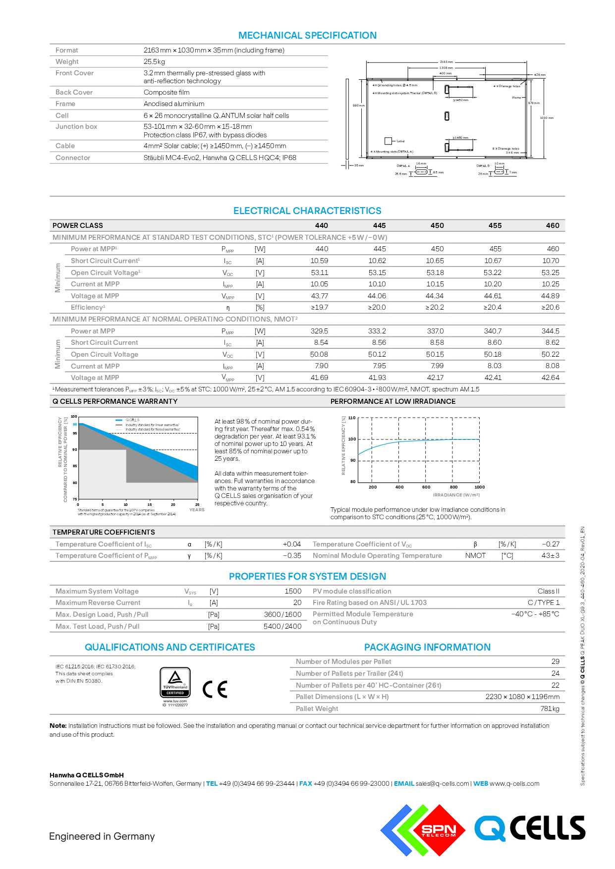 QCells Q.Peak Duo XL-G9.3 450 (Qcells 450) là dòng sản phẩm sử dụng nguyên liệu monocrystalline cao cấp – công nghệ cải tiến vượt bậc của thương hiệu tấm pin năng lượng mặt trời Hanwha QCells – thuộc tập đoàn Hàn Quốc tại Việt Nam.