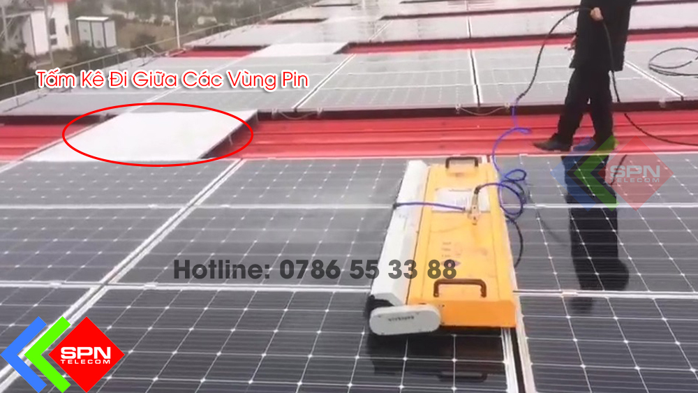 (Lưu ý không dùng các loại máy có sợi PVC cọ cứng chuyê cho cọ rửa sân cọ rửa tường để chà sát tấm pin vì có thể gây xước tấm pin)