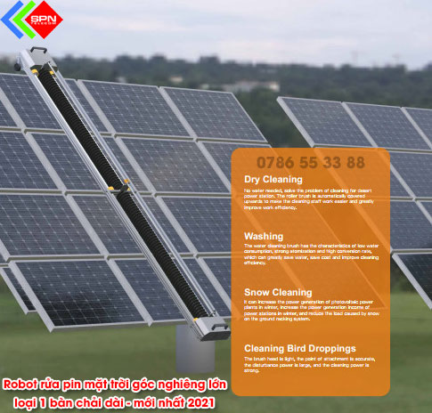 3. Giới Thiệu RoBot Rửa Pin Mặt Trời Góc Nghiêng Lớn Loại 1 Bàn Chải Siêu Dài