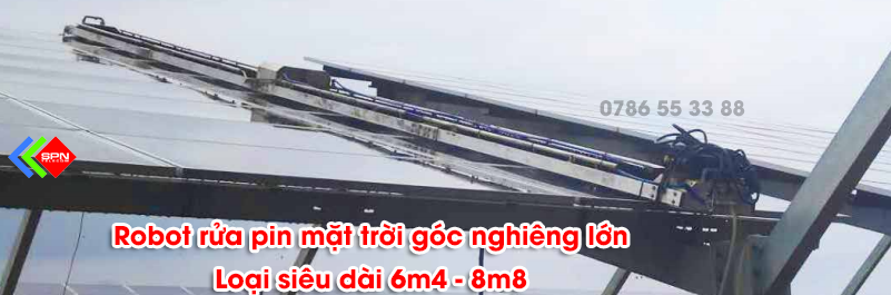 Robot rửa pin mặt trời loại 1 bàn chải siêu dài có kích cỡ tiêu chuẩn 6m4 , có thể đặt hàng theo yêu cầu lên tới 8m8 - 9m6 tùy theo nhu cầu của quý khách hàng