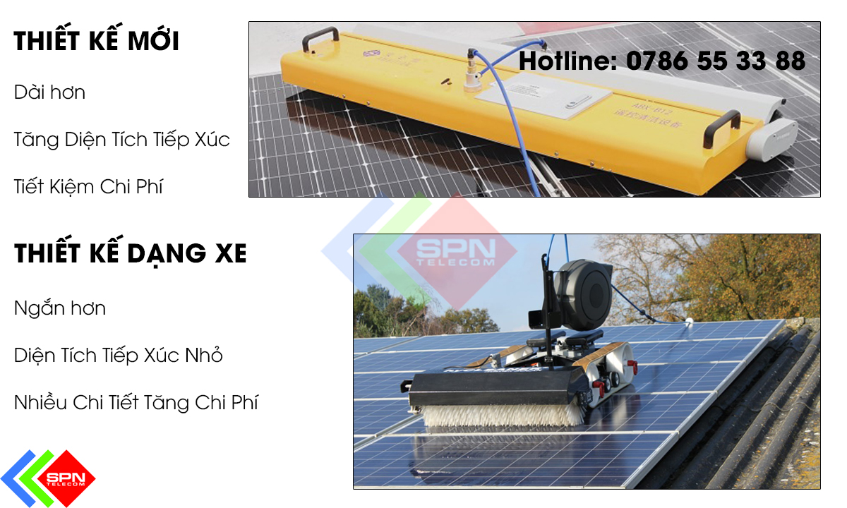 Các sản phẩm robot rửa pin mặt trời của SPN Telecom nhập khẩu phân phối luôn có thiết kế mới nhất dựa trên nghiên cứu thực tế các công trình pin năng lượng mặt trời để cung cấp ra giải pháp hiệu quả cao nhất, làm sạch đơn giản, nhanh chóng và tối ưu chi phí kinh tế cho các chủ đầu tư hệ thống điện mặt trời.