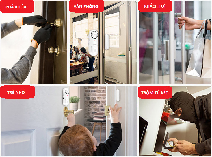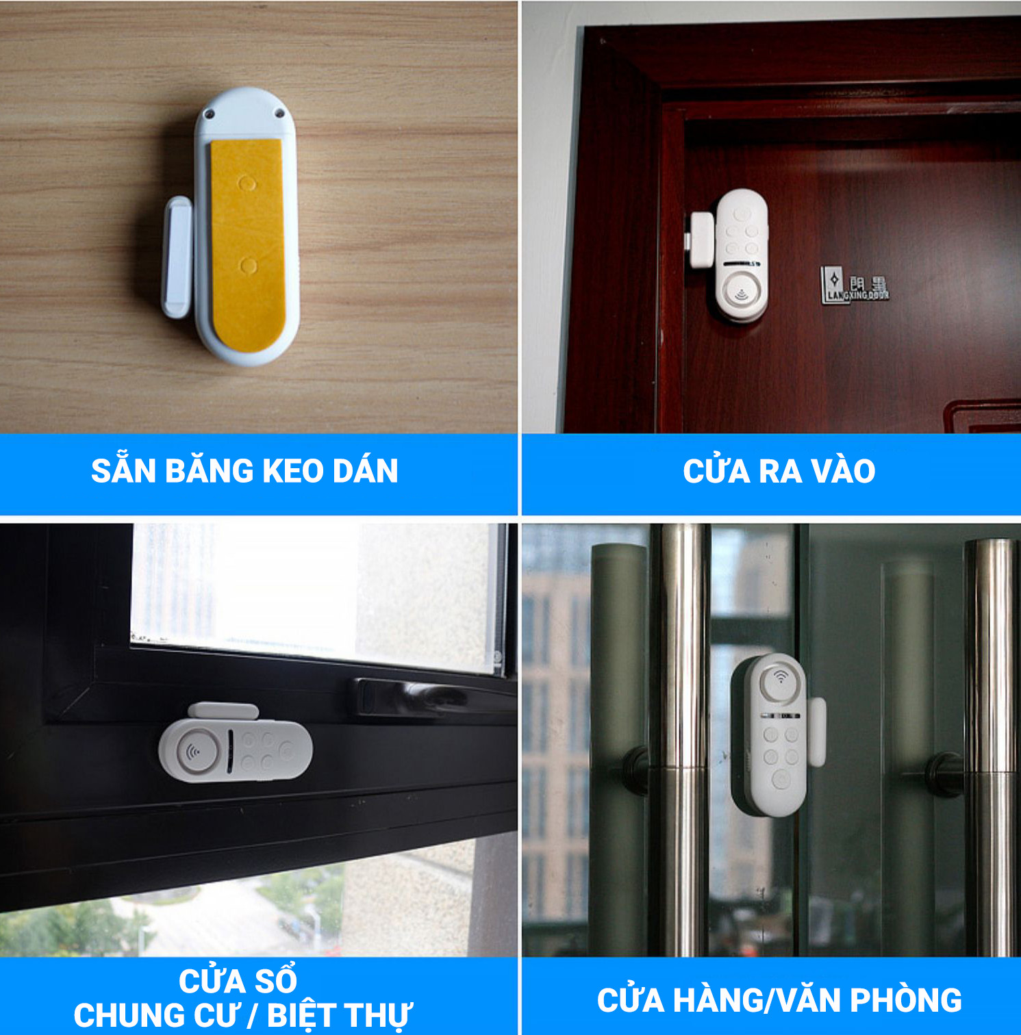 Thiết bị dùng cho mọi hệ thống cửa như: cửa sổ, cửa ra vào, cổng nhà để xe… cho phép người dùng sử dụng app để theo dõi trạng thái đóng mở của cửa . Khi cửa mở thì thiết bị sẽ phát cảnh báo và gửi thông tin (cảnh báo trên app) đến điện thoại di động của người dùng thông qua app cài đặt.